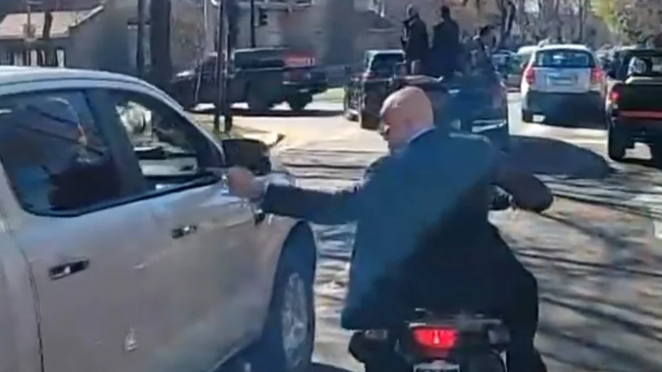 Los incidentes se registraron cuando la caravana llegaba a la Plaza Grigera. En medio de la confusión y el tenso clima, el diputado José Luis Espert, que acompañaba al Presidente, fue evacuado y se retiró del lugar en una motocicleta.