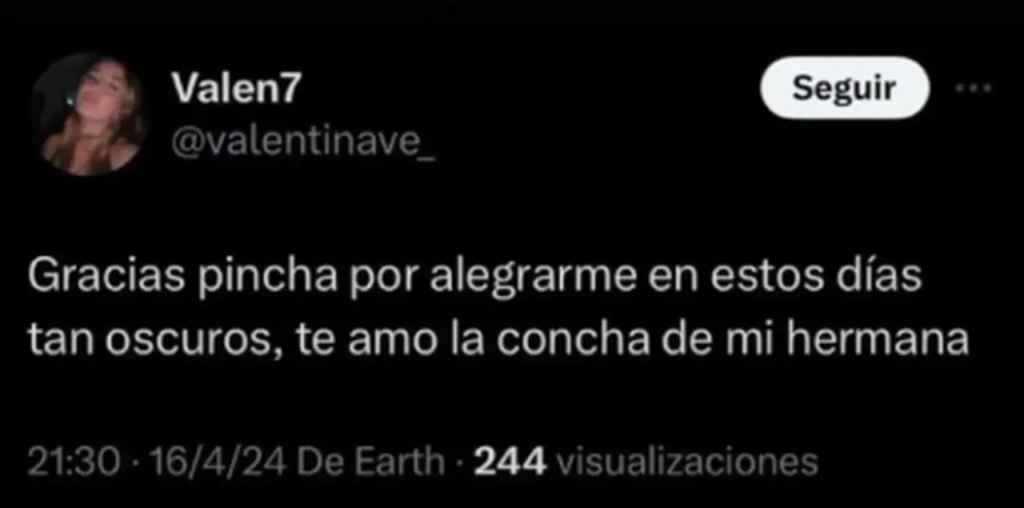 Minutos antes, Velázquez subió otro comentario que provocó polémica para los familiares de la víctima: «Gracias Pincha por alegrarme en estos días tan oscuros».