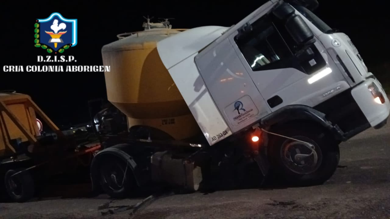 El incidente fue reportado por la Comisaría de Colonia Aborigen, dependencia que acudió al lugar pasada la 1:00. Al llegar, los efectivos se entrevistaron con el conductor del transporte, J. O. B., de 56 años, domiciliado en Fontana, quien manejaba un camión Iveco (dominio AD263QX) cargado con cemento.