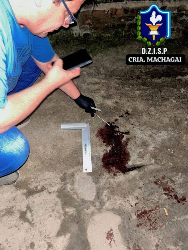 Los efectivos se dirigieron al lugar del enfrentamiento, donde entrevistaron a vecinos y confirmaron que se había producido una pelea entre la víctima y un hombre acompañado por sus hijos. En la escena hallaron manchas de sangre y un cuchillo de 10 centímetros de hoja que habría sido utilizado en la agresión.