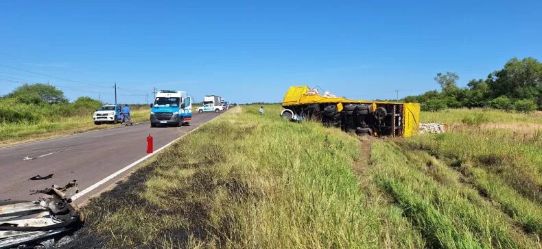 Un impactante siniestro vial ocurrió esta mañana en la ruta nacional 16 a la altura del acceso a Colonia Aborigen cuando colisionaron un camión de transporte de cargas y un automóvil. Este último se incendió completamente provocando la muerte de su conductor.