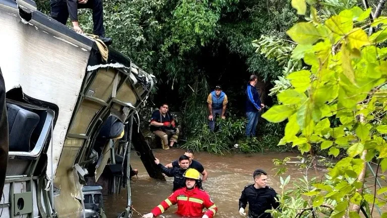 El hecho se produjo en el puente sobre el arroyo Yazá, en la Ruta Nacional 14, luego de que un automóvil Ford Focus impactara de frente contra un ómnibus de larga distancia de la empresa Sol del Norte que se dirigía desde Oberá a Puerto Iguazú. Tras el choque, el ómnibus cayó al cauce del arroyo Yazá.