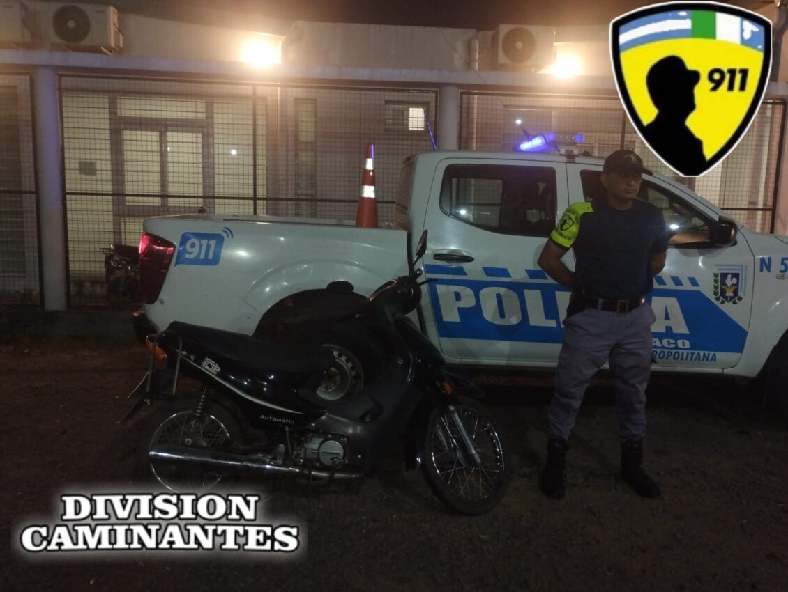 Es así que dieron aviso a sus pares de la División Caminantes, quienes acudieron al lugar y procedieron al secuestro del rodado, como también de un casco que se encontró en la motocicleta y un candado.