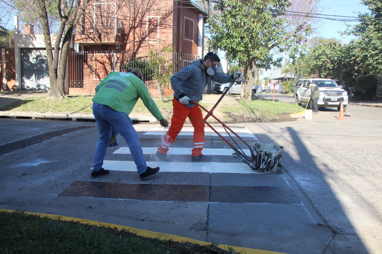 El operativo incluyó la pintura de cruces peatonales y cordones en ochavas. Estas mismas tareas se extenderán por el micro y macrocentro, durante las próximas semanas.