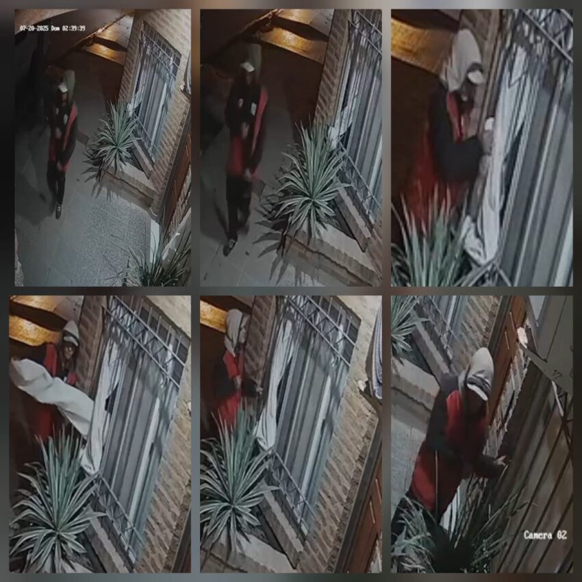 La denunciante, N. M. V. d. B., de 53 años, relató que cerca de las 13:15 del domingo notó la falta de varios elementos que se encontraban en la vereda de su domicilio. Al revisar las cámaras de seguridad, constató que a las 2:20 de la madrugada un joven utilizó una barra de hierro para arrastrar una carpa color crudo y juguetes varios hacia el exterior de su vivienda.