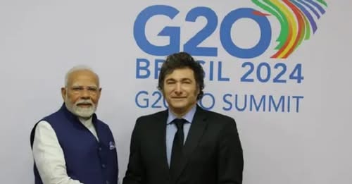 Modi arribó a Argentina este viernes por la noche y confirmó su entusiasmo por el encuentro mediante un mensaje en la red social X (ex Twitter), donde expresó: “Tengo muchas ganas de reunirme con el presidente Javier Milei y mantener conversaciones detalladas con él”.