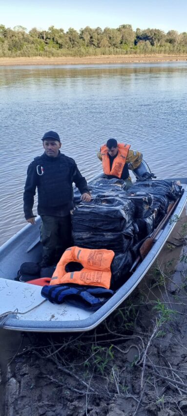 En medio del monte, próximo al río, los uniformados encontraron varios bultos ocultos que contenían mercadería de contrabando: 79 cajas de 50 y 15 brezadas de cigarrillos marca Rodeo, lo que totaliza 3.965 cartones. El valor de lo incautado fue estimado en alrededor de 50 millones de pesos. En el mismo procedimiento se secuestró también un bote de madera blanco y amarillo, con dos remos, utilizado presumiblemente para el traslado.