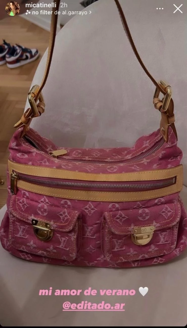 Limitándose a retratar una pequeña cartera de la marca Louis Vuitton, monogram, en tono rosado y la cual, por lo que se llega a apreciar, es de temporadas pasadas, la mayor de las hijas de Marcelo Tinelli reconoció que dicho accesorio fue su fiel aliada durante las vacaciones.