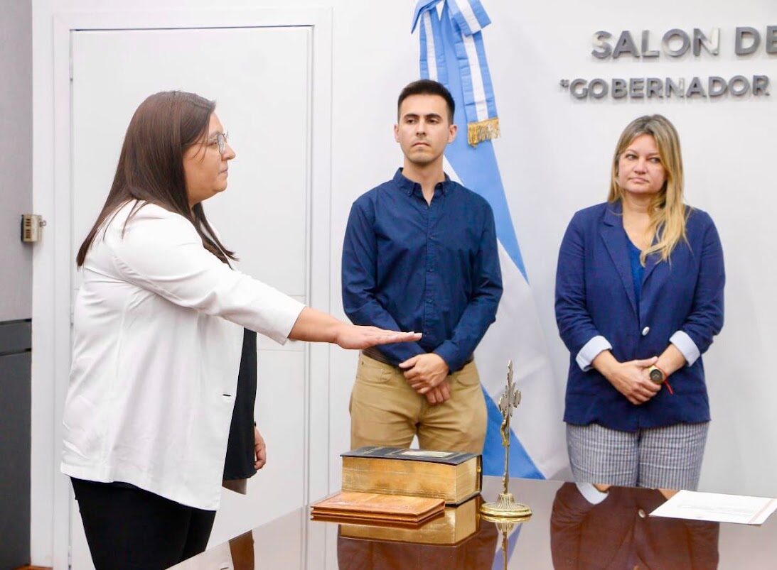 La ministra de Desarrollo Humano del Gobierno del Chaco, Gabriela Galarza, tomó juramento hoy a dos nuevos funcionarios: asumiendo como Subsecretaria de Economía y Políticas Sociales, Carla Cantero, y como Subsecretario de Planificación Estratégica y Financiera, Ariel Alejandro Frete.
