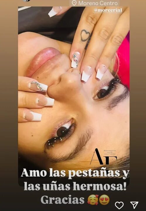 “Amo las pestañas y las uñas hermosa! Gracias”, agradeció Morena, quien se habría movilizado hasta Moreno para realizarse los cambios estéticos.