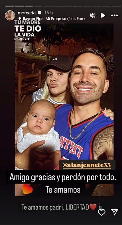 «Amigo gracias y perdón por todo. Te amamos padri, LIBERTAD», escribió la influencer junto a una foto de ambos y su hijo Amadeo.