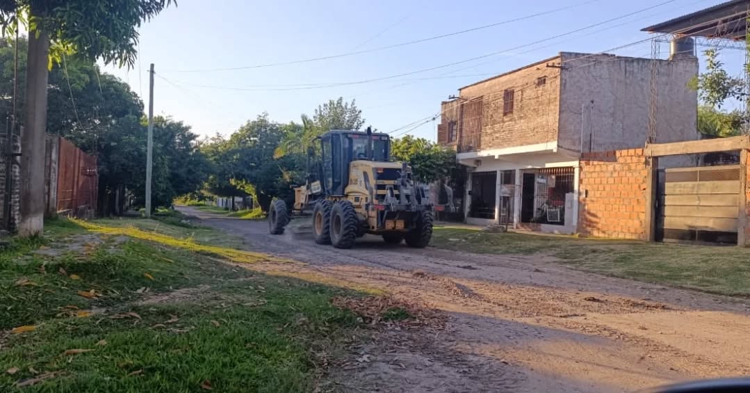 El Municipio de Fontana llevó adelante trabajos de mejoramiento de calles en el barrio Villa Oro mediante el servicio de una motoniveladora, en el marco de una acción conjunta con Vialidad Provincial.