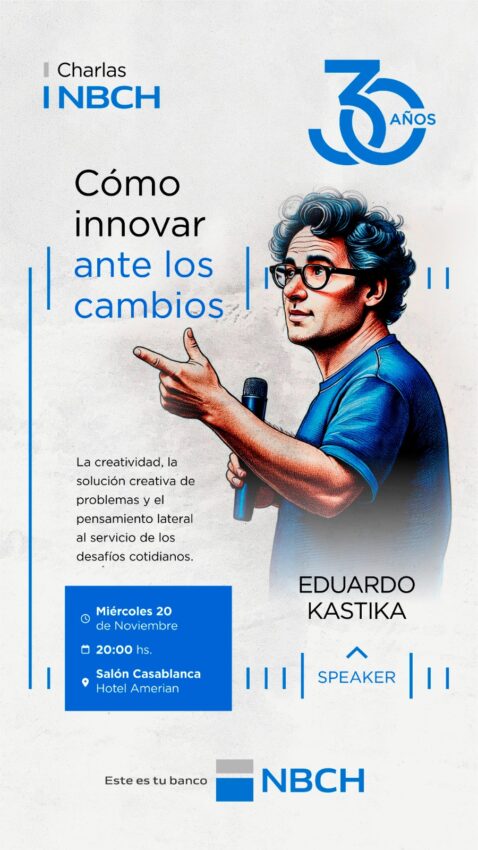 En el marco del 30° Aniversario de Nuevo Banco del Chaco, se realizará el próximo miércoles 20, una charla abierta con el reconocido speaker internacional Eduardo Kastika sobre “Cómo innovar ante los cambios”. Una propuesta para aportar una mirada disruptiva sobre el contexto y poner en marcha la creatividad para enfrentar nuevos desafíos.