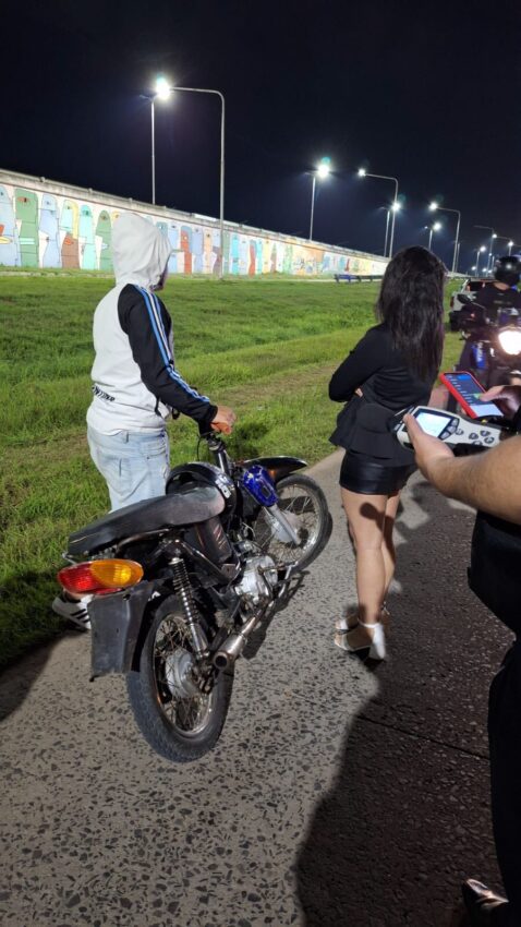 Durante la madrugada del sábado, un joven motociclista intentó fugarse de un control ubicado en Av. Sarmiento y Combate Vuelta de Obligado, realizando una maniobra peligrosa. Sin embargo, minutos después fue interceptado en otro puesto situado sobre la colectora de la Ruta Nacional 11.