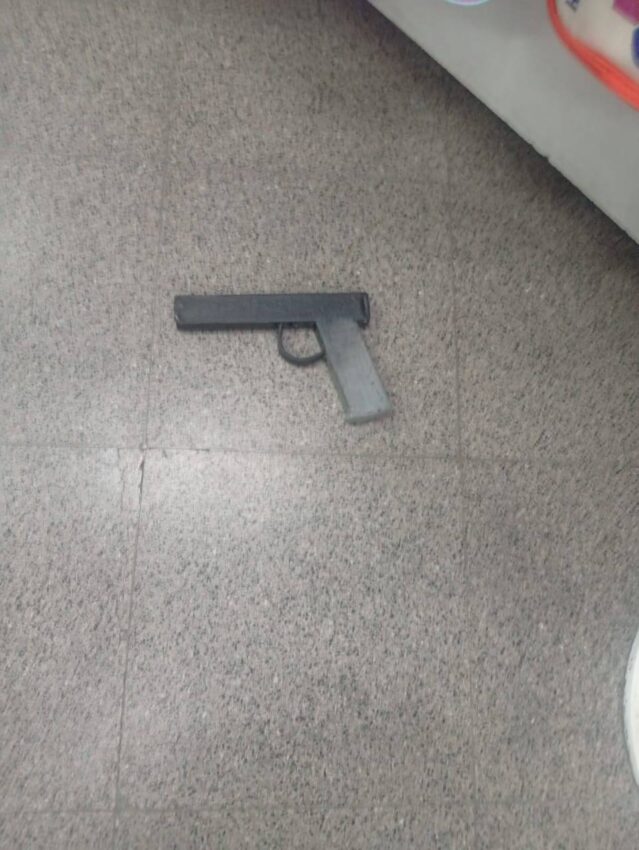 Durante la intervención, los uniformados secuestraron una réplica de pistola de color negro que el individuo portaba entre sus pertenencias.