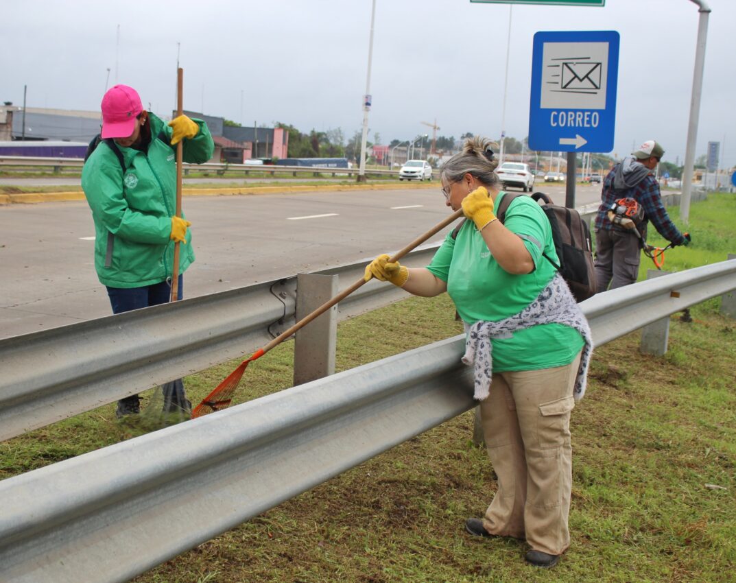 Cerca de 50 personas llevan adelante este trabajo con desmalezadoras y palas, además de equipos viales como ser retroexcavadoras, camiones batea y minicargadoras.