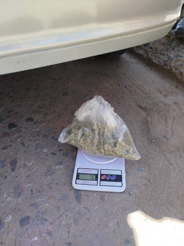 Mientras se realizaba patrullaje por la Av. 25 de Mayo en sentido descendente, se observó a un sujeto masculino con camiseta blanca y shorts negros, quien tenía el baúl abierto y en su mano una bolsa plástica transparente con sustancia verde, junto a este otro sujeto masculino, junto a una motocicleta sin carenado color negra, al acercarse la policía durante el operativo, el sujeto en la motocicleta abordó y se dio a la fuga por Av. 25 de Mayo en contramano, retomando posteriormente la calle 13 y perdiéndose de la vista. Mientras tanto, el sujeto que portaba la bolsa de polietileno fue identificado y detenido.