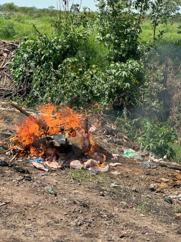 El hallazgo más importante se registró en la carnicería “Marce”, donde se decomisaron 37,3 kilos de carne bovina y 19,2 kilos de carne aviar en mal estado. Todo el material incautado también fue incinerado.