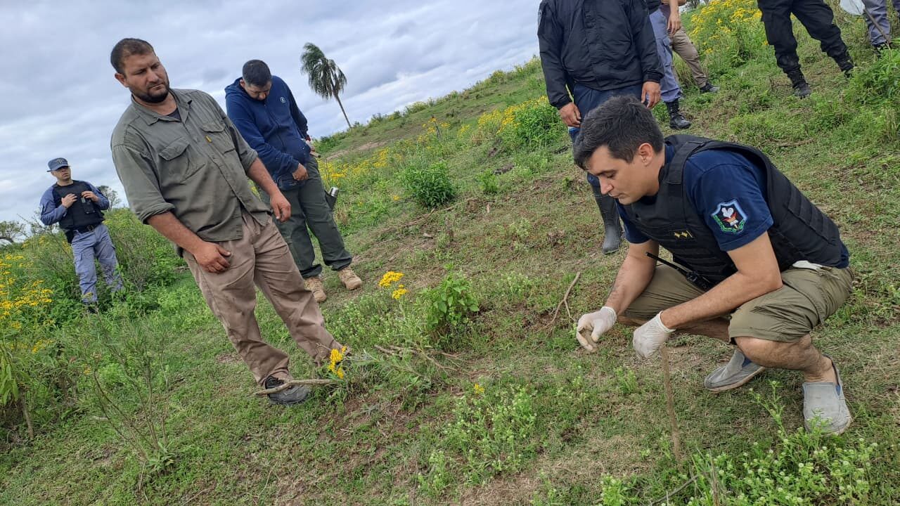 Además, en la misma zona se halló una linterna negra con detalles rojos marca Home Ville. Posteriormente, en un rastrillaje realizado en cercanías de la laguna donde había sido encontrado el cuerpo de la víctima durante la madrugada, se procedió al secuestro de un cartucho calibre 12/70 percutado, un taco separador del mismo calibre y un cartucho calibre 28 color amarillo sin percutar.