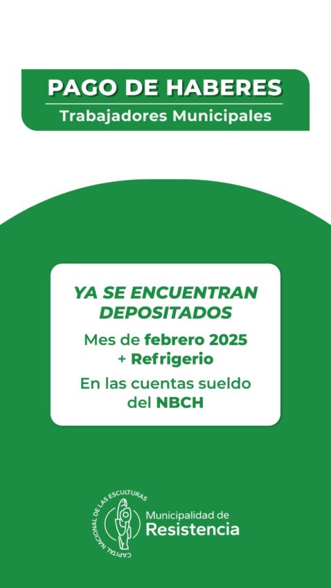 El día de hoy los haberes de los trabajadores municipales ya se encuentran depositados en sus cuentas del Nuevo Banco del Chaco.