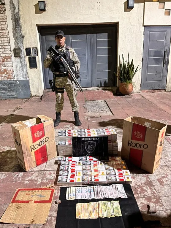 Durante la inspección del vehículo, los uniformados descubrieron 65 brezas de cigarrillos sin la documentación correspondiente que acreditara su origen legal. Además, hallaron $328.000 en efectivo, ocultos dentro del compartimento del airbag, una modalidad poco habitual pero que evidencia una intención de ocultamiento.
