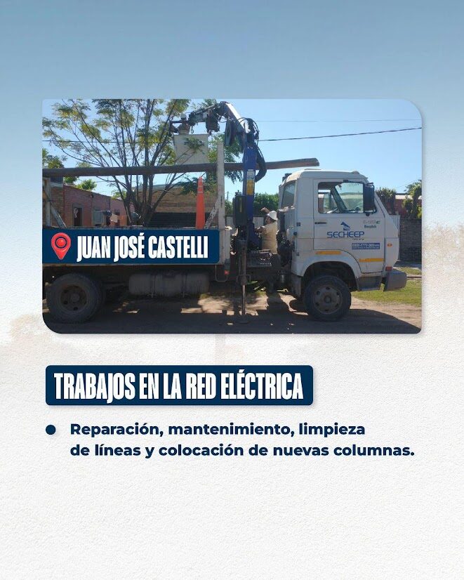 -*En líneas rurales* del área metropolitana, se llevan a cabo reposiciones de postes y redes en parajes como El 25, La Choza, Fortín Cardozo, General Obligado, entre otros.