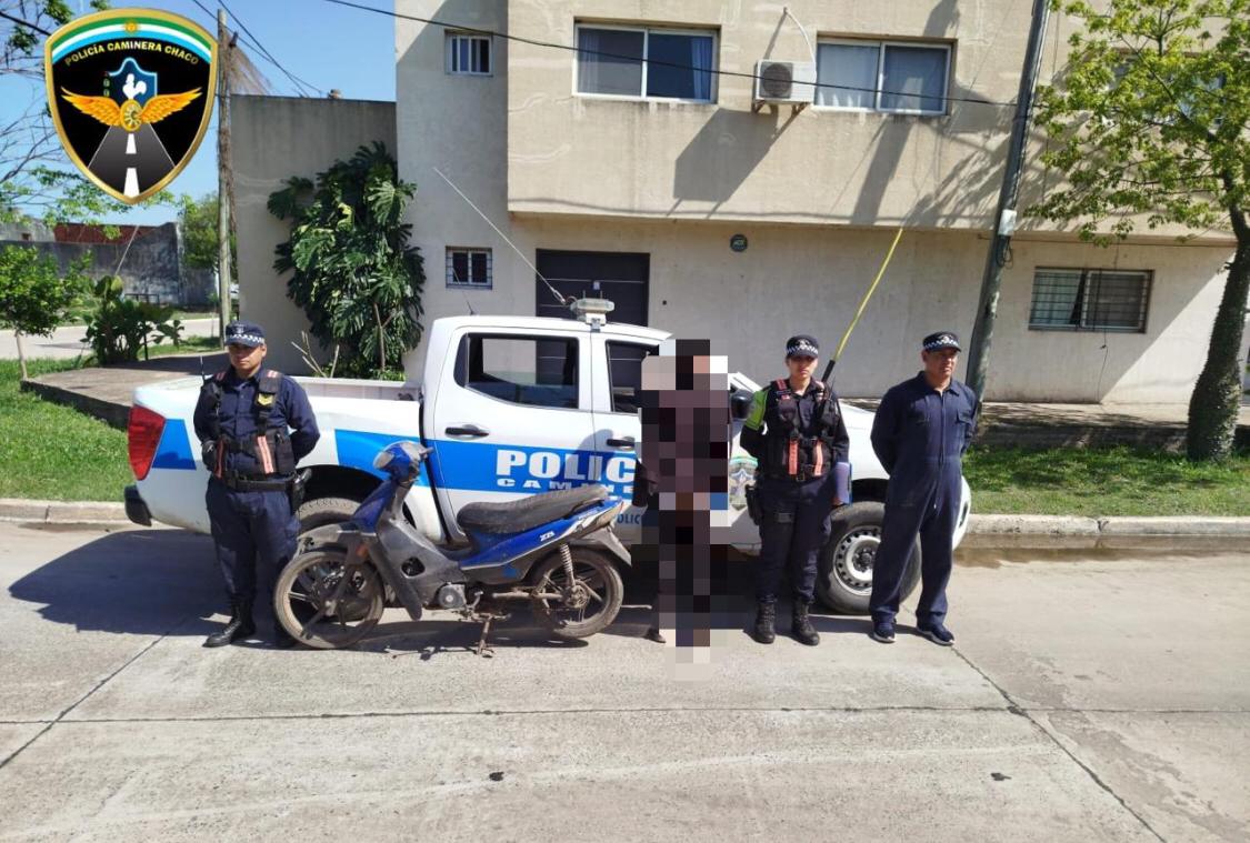 Sucedió está mañana , cuando motoristas que realizaban trabajos circulación preventivas por calle Güemes y León Zorrilla , observaron a un joven que se desplazaba caminando con una moto y al notar la presencia de los efectivos viales intentó darse a la fuga.