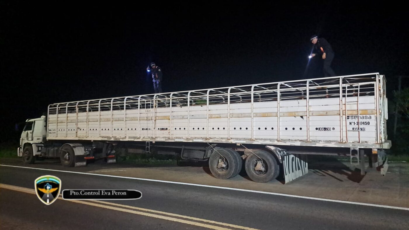 Operadores del Puesto de Control Caminero Puerto Eva Perón, demoraron el paso de un camión que transportaba animales vacunos, para el correspondiente control de documentaciones.