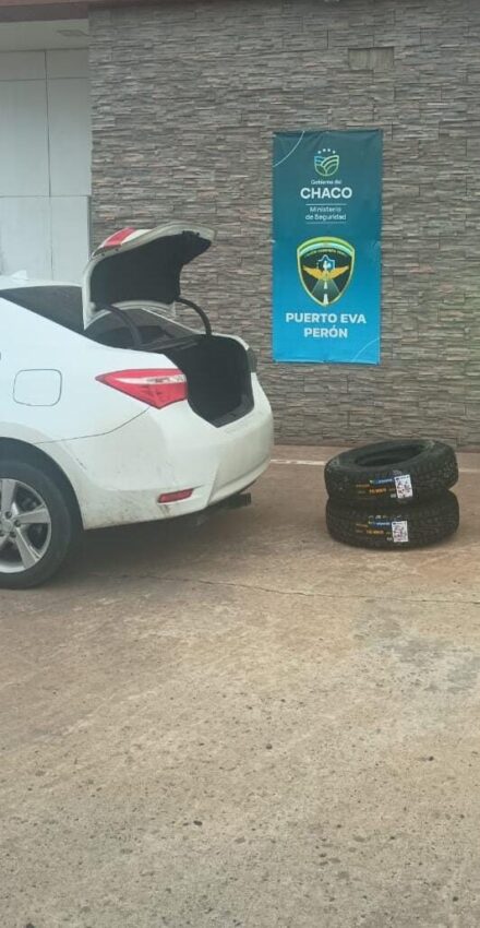 Puesto de Control Caminero Eva Perón, agentes viales secuestraron cuatro cubiertas de rodado 16, de origen chino. Se trató de un hombre de 43, años que transportaba en su automóvil marca Toyota Corolla cubiertas sin las documentaciones exigibles para ese tipo de carga.