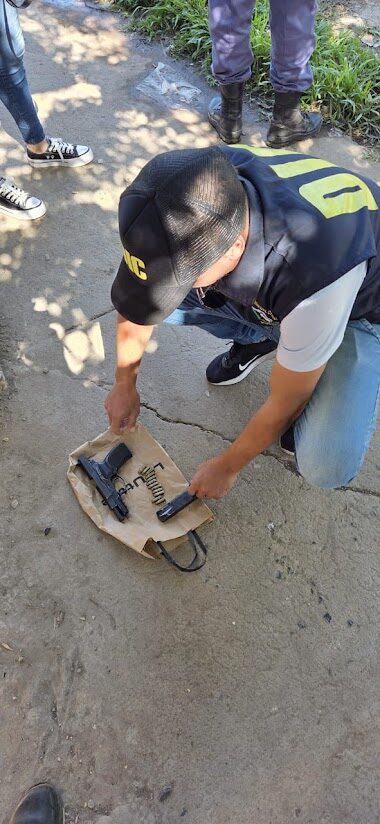 Posteriormente, en Calle Necochea 2991, se identificó a la ciudadana y que deseaba entregar un arma de fuego que su novio le dejó en horas más tempranas para que la guardara. Ante testigos hábiles, se procedió al secuestro de una (01) pistola marca Bersa, modelo Thunder, calibre 9mm, pavonado negro, serie E89560, con su respectivo cargador y doce (12) cartuchos del mismo calibre.