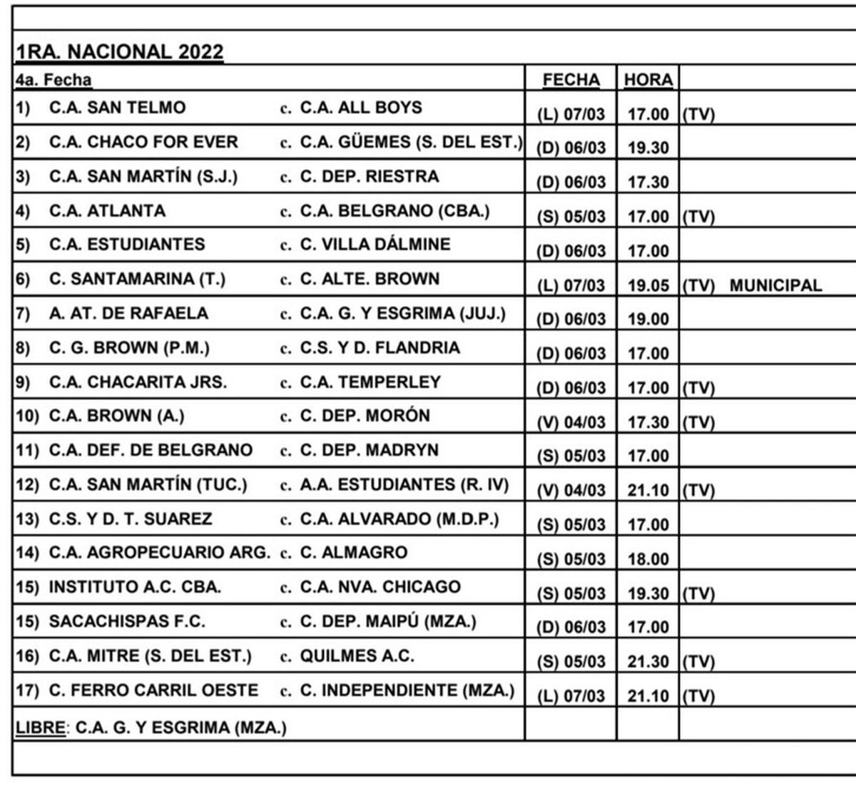 La programación completa de la 4ª fecha