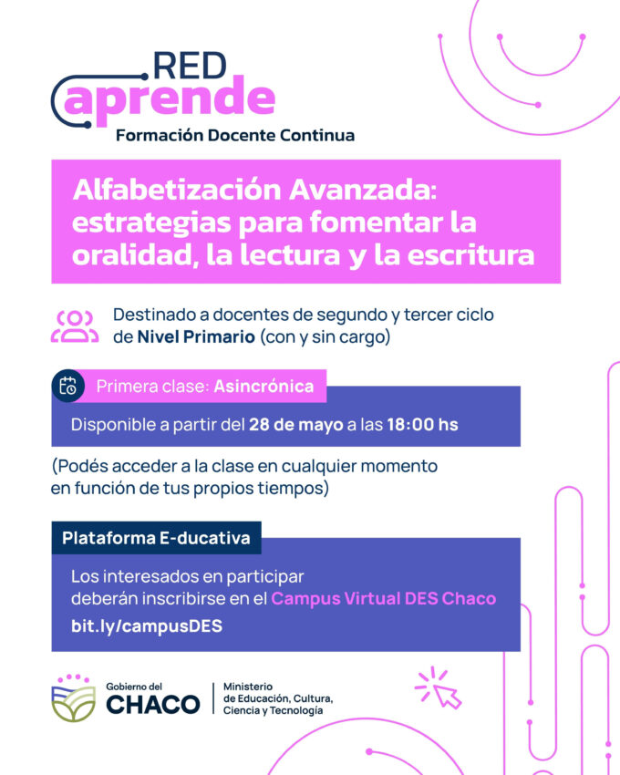 Este miércoles inicia el trayecto de capacitación Alfabetización avanzada: estrategias para fomentar la oralidad, la lectura y la escritura, en el marco del programa de formación docente Red Aprende. Está destinado a docentes con y sin cargo de segundo y tercer ciclo de Nivel Primario, y hasta el momento tiene más de cinco mil inscriptos.