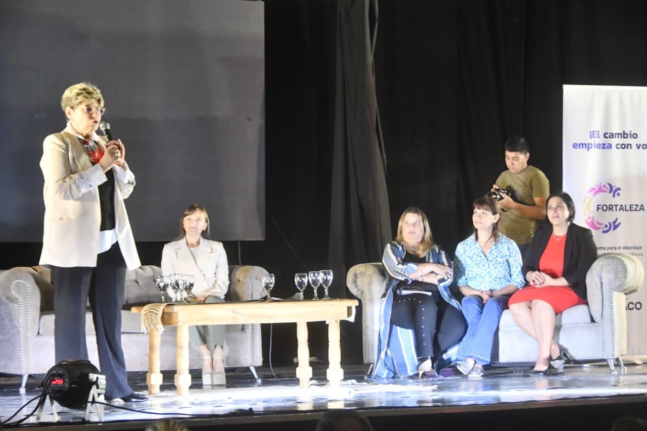 En la oportunidad, la vicegobernadora Schneider les contó a los estudiantes presentes en qué consiste este programa provincial para el abordaje integral de los consumos problemáticos, destacando que depende del Ministerio de Salud Pública y articula acciones de manera interministerial con varios organismos del Estado. “Fundamentalmente con Fortaleza queremos acercar las herramientas que puedan necesitar para abordar la temática de los consumos problemáticos en diferentes instancias: el antes, el durante y el después”, señalando la importancia en la prevención de esta problemática para que los adolescentes y jóvenes no tengan que llegar a situaciones extremas que perjudican lo físico y psíquico, así como al entorno familiar.