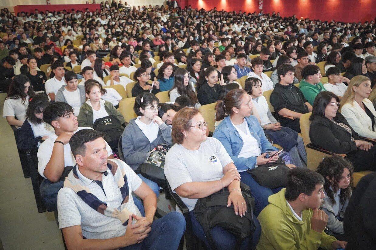 La vicegobernadora de la Provincia, Silvana Schneider, junto a la ministra de Educación, Sofía Naidenoff, presidió hoy el encuentro del Programa Fortaleza, que congregó a más de 1000 estudiantes y docentes de 24 escuelas de Nivel Secundario y de Educación de Jóvenes y Adultos de la ciudad capital, en el auditorio del Domo del Centenario.