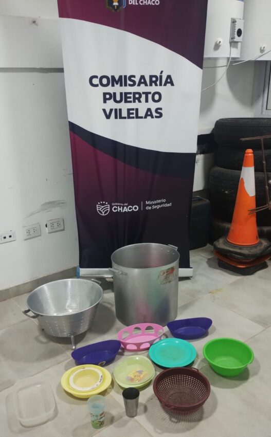 A raíz de una denuncia radicada por la directora del colegio E.E.S. N° 149, los efectivos de la Comisaría de Puerto Vilelas comenzaron una investigación para hallar los bienes sustraídos. Personas extrañas se habían llevado utensilios de cocina.