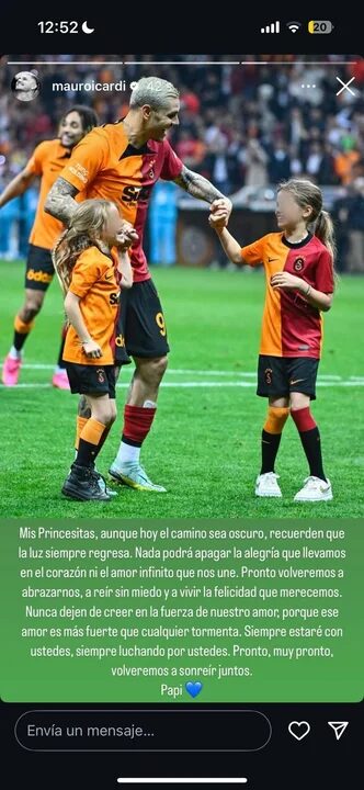 Minutos más tarde, les dedicó otro mensaje a las chicas: “Mis princesitas, aunque hoy el camino sea oscuro, recuerden que la luz siempre regresa. Nada podrá apagar la alegría que llevamos en el corazón ni el amor infinito que nos une. Pronto volveremos a abrazarnos, a reír sin miedo y a vivir la felicidad que merecemos. Nunca dejen de creer en la fuerzade nuestro amor, porque ese amor es más fuerte que cualquier tormenta. Siempre estaré con ustedes, siempre luchando por ustedes. Pronto, muy pronto, volveremos a sonreír juntos. Papi”.