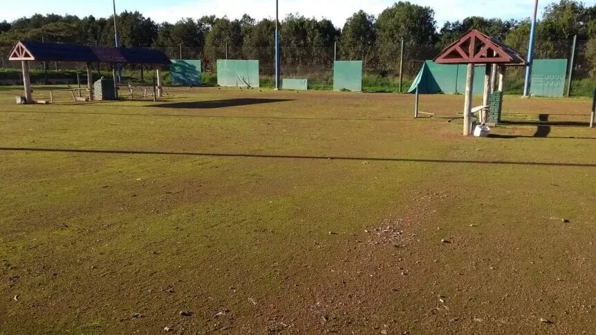 El naranja cede ante el verde del musgo. Una tribuna, edificada en el amanecer de la década de 1980, llegó a 2017 sin fisuras y actúa de centinela. Sin líneas ni redes, es difícil imaginar que entre las medias sombras dobladas como yuyos vivieron cinco canchas de tenis por las que pasaron las infancias de Juan Martín Del Potro y Juan Mónaco. Mientras las recorre, Alejandro Gasperini, hasta hace un puñado de meses operario mecánico de la planta y hoy profesor de revés a una mano, recuerda sus raquetazos bautismales: “Me dio lastima ver como estaba el espacio, así que comencé a armar el esquema de la actividad”. Nativa de la comunidad, abuelo y padre artesanos del portland, Conte destaca que “el club tiene vida por el trabajo de las subcomisiones”, ya que para garantizar el abastecimiento del polvo de ladrillo y de pelotas fluorescentes o la flamante adquisición de luces led en tres pistas laburan 15 personas. Cuarenta son las que asisten a clases.
