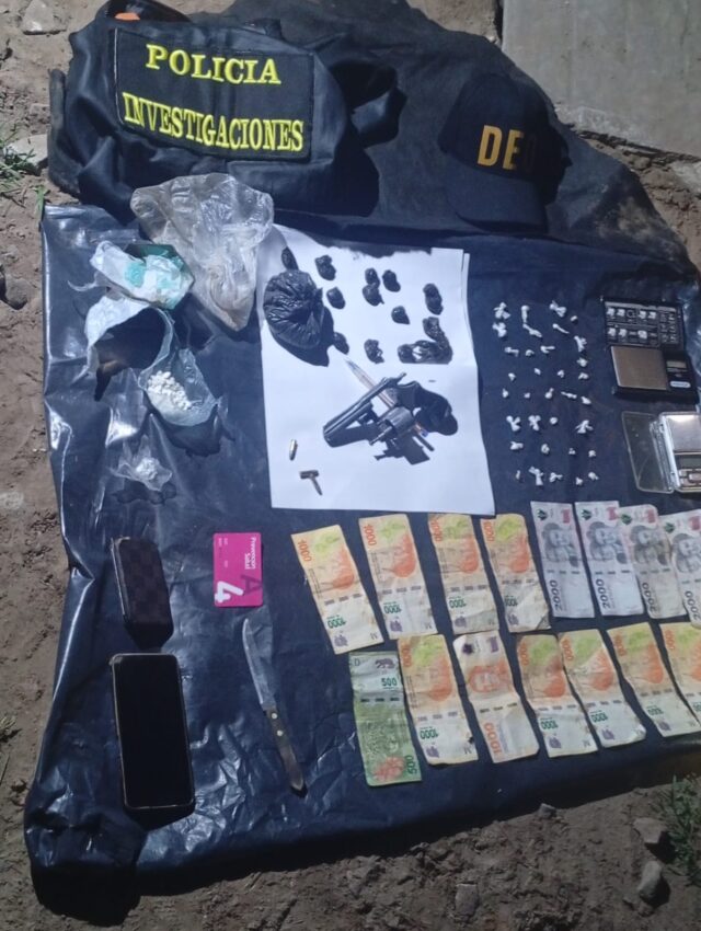Durante el procedimiento, uno de ellos, de 19 años, tenía en su poder envoltorios con sustancias prohibidas, dinero en efectivo y otros elementos vinculados a la actividad ilícita. Asimismo, entre sus prendas se halló un revólver calibre 22 con cartuchos del mismo calibre.
