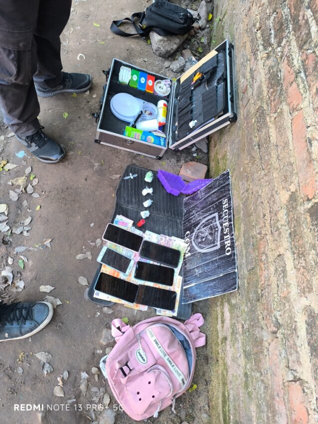 Aguardaron la presencia de un personal policial femenino y luego, inspeccionaron el interior del morral, encontraron 35 gramos de cocaína, distribuidos en varios trozos compactos, siete teléfonos celulares de diferentes modelos y marcas, un cartucho de escopeta calibre 16.