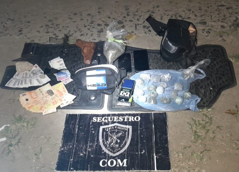 Anoche, personal de la División C.O.M detuvo a un hombre de 34 años que circulaba a alta velocidad y realizando maniobras peligrosas por la Avenida Vélez Sarsfield. El procedimiento concluyó con el secuestro de un arma de fuego, marihuana fraccionada para su presunta comercialización, y otros elementos de interés para la causa.