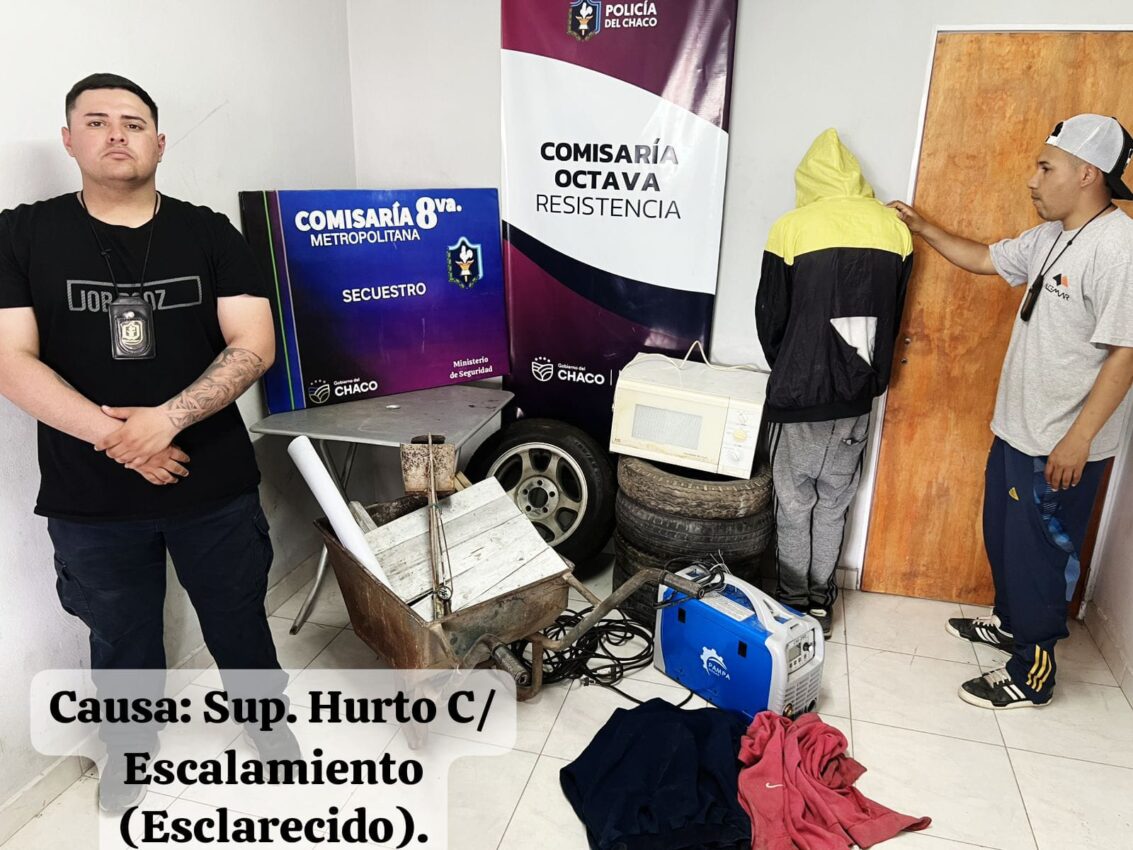 Un operativo policial permitió esclarecer un hecho de robo que afectaba desde hace varias semanas a una vecina de Resistencia. El demorado fue identificado como S. A. P., de 33 años, quien fue sorprendido intentando ocultar varios elementos sustraídos en un terreno baldío del Asentamiento Del Valle.