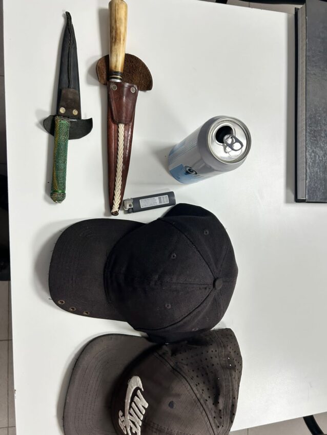 Según informaron, ambos mostraron una actitud hostil ante la intervención policial. Tras ser identificados, uno de ellos tenía en su poder una lata de cerveza, mientras que el otro llevaba entre sus pertenencias dos cuchillos tipo faca con vainas de cuero, de aproximadamente 30 centímetros de largo.