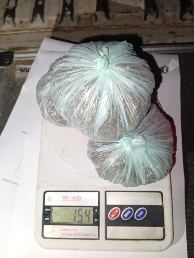 En la intersección con la calle Nahuel Huapi lo identificaron y descubrieron que en su poder tenía un envoltorio con estupefacientes. Mediante la intervención de la División Microtráfico se pudo saber que se trataba de marihuana con el peso total de 154 gramos.