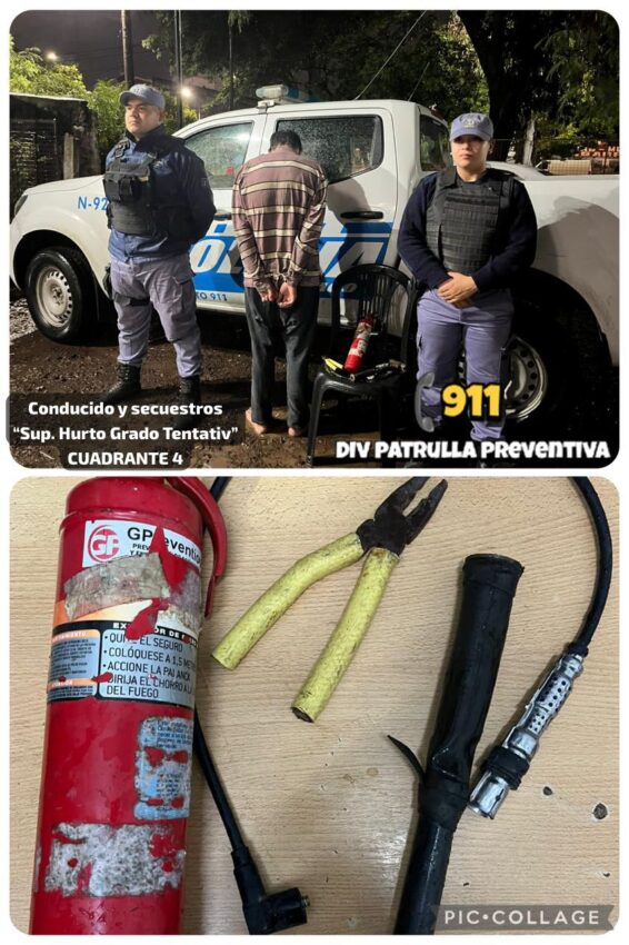 Durante el procedimiento, los agentes secuestraron en su poder un matafuego de 1 kg color rojo, una pinza de mano con mango amarillo y un martillo tipo carpintero color negro, elementos que habían sido sustraídos de la vivienda. La damnificada, una mujer de 58 años, fue invitada a radicar la denuncia correspondiente.