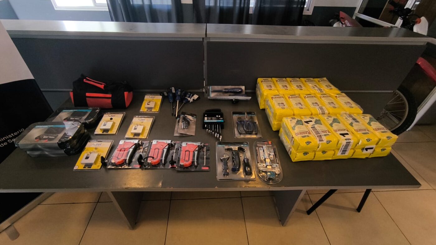 Es así que tras requisarlo, incautaron 3 pack de Yerba de 10 unidades Playadito, un cerrojo pasador cromado, un juego de herramienta de tres unidades (martillo pico, destornillador y llave francesa), tres engrampadora semiprofesional, cuatro candado marca Zelta, tres cajas de llaves tubos, un bolso negro y rojo con herramientas varias en su interior, tres destornilladores Philips azul, un destornillador plano azul, un conjunto de llave de 8 piezas, dos conjuntos de llaves Alem de 9 piezas, dos destornilladores telescópicos color azul y un set de 3 pinzas azules.