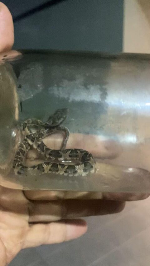 Posteriormente, alrededor de las 23:00, la ciudadana Débora Wolcoff, domiciliada en el barrio San Diego, alertó sobre la aparición de una serpiente en su vivienda. Tras solicitar una imagen para su identificación, el especialista determinó que se trataba de una yarará chica (Bothrops diporus), especie de importancia médica por la toxicidad de su veneno.