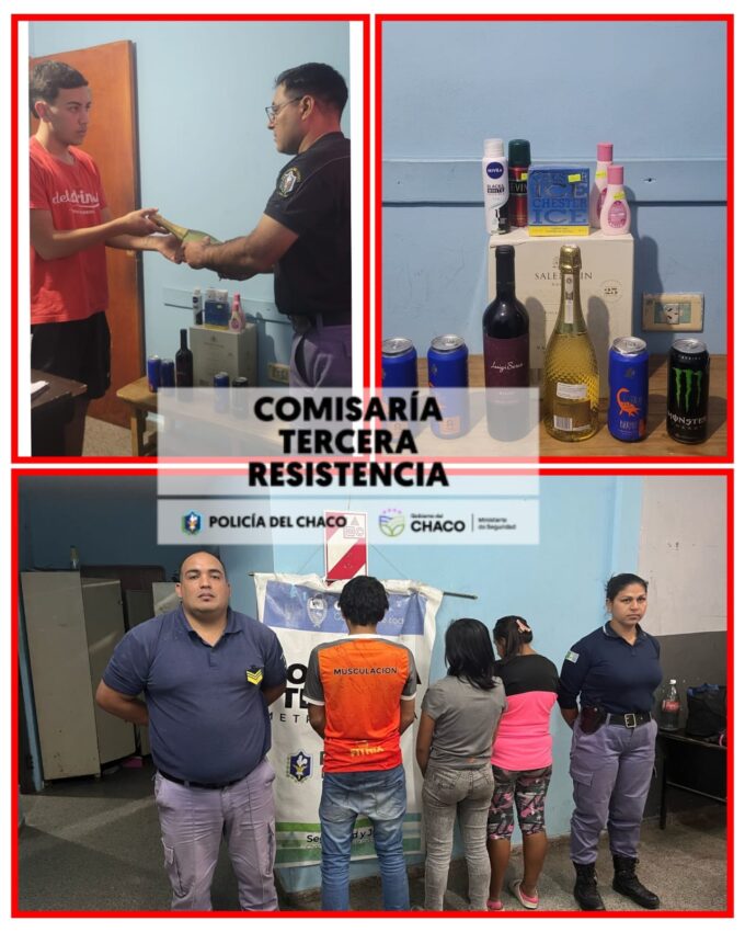 Un hombre y dos mujeres terminaron aprehendidos en la causa “supuesto robo” este martes a las 14, luego de ser demorados con latas de cervezas, un vino, champagne, energizantes, desodorantes, perfume y cremas humectantes, que sustrajeron de un local ubicado en la avenida Castelli al 127, Resistencia.