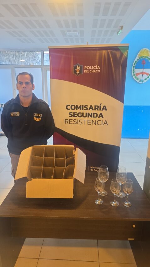 Mientras se realizaban las diligencias, agentes montaron un operativo cerrojo por la zona, logrando interceptar al sospechoso en calle Liniers al 1300 aprox, quien tenía en su poder una caja de cartón con dos copas de vino grandes en perfecto estado, que fueron reconocidas por la víctima como de su propiedad.