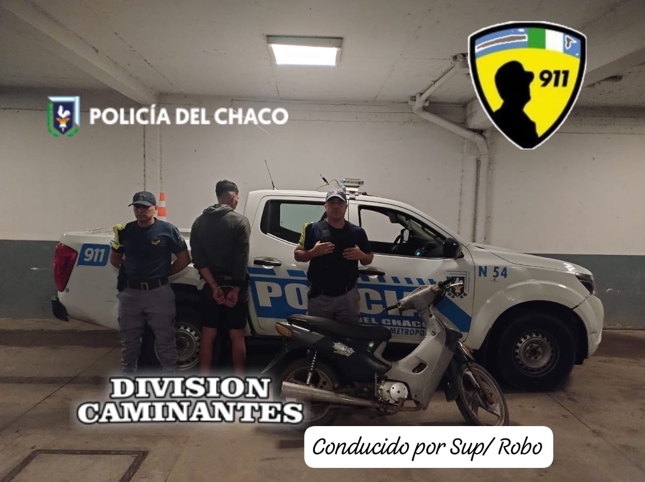 El sospechoso fue interceptado a pocos metros del lugar, por agentes de la División Caminantes, tras recibir el alerta del personal de Video Vigilancia. Recuperaron una motocicleta Guerrero Trip color azul y gris.