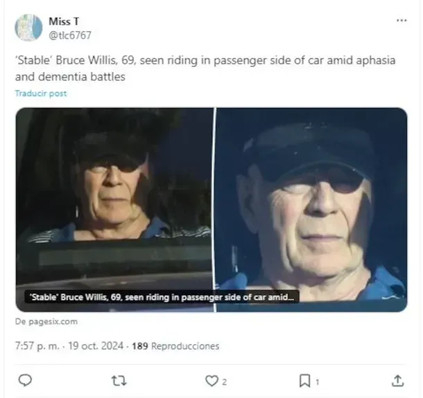 El actor, que padece demencia frontotemporal, fue visto en un auto por las calles de la ciudad.